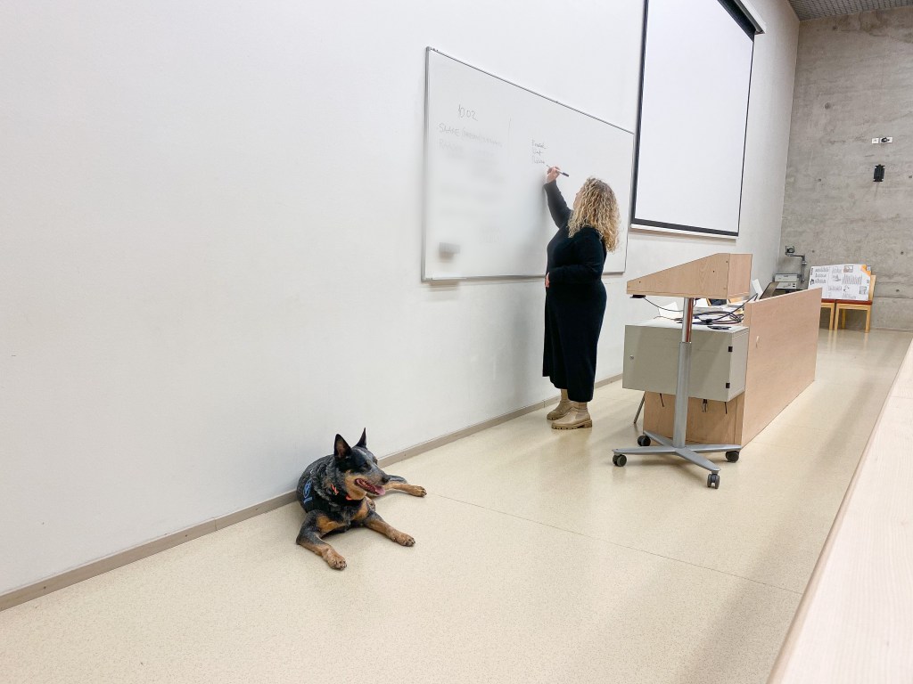 Siiski nüüd saime kutse osaleda Tallinna Ülikoolis loomi kaasavate sekkumiste kursusel ühes tunnis. Kuigi mul kahjuks pole pilte päris tegevustest, siis Kitty ilmselgelt väga nautis seda olukorda.