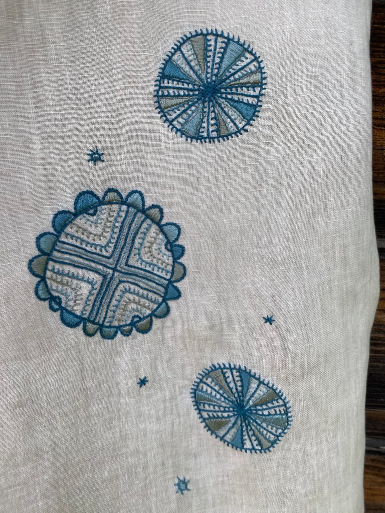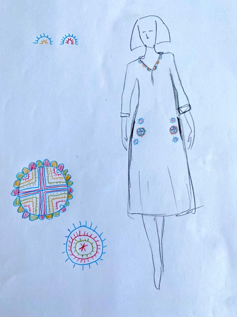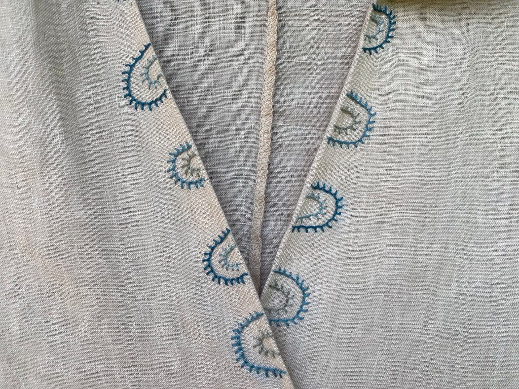 Ema soovis endale tikandiga linast kleiti. Kleidi valis ta ise välja ning tikandi sellele tikkisin mina.