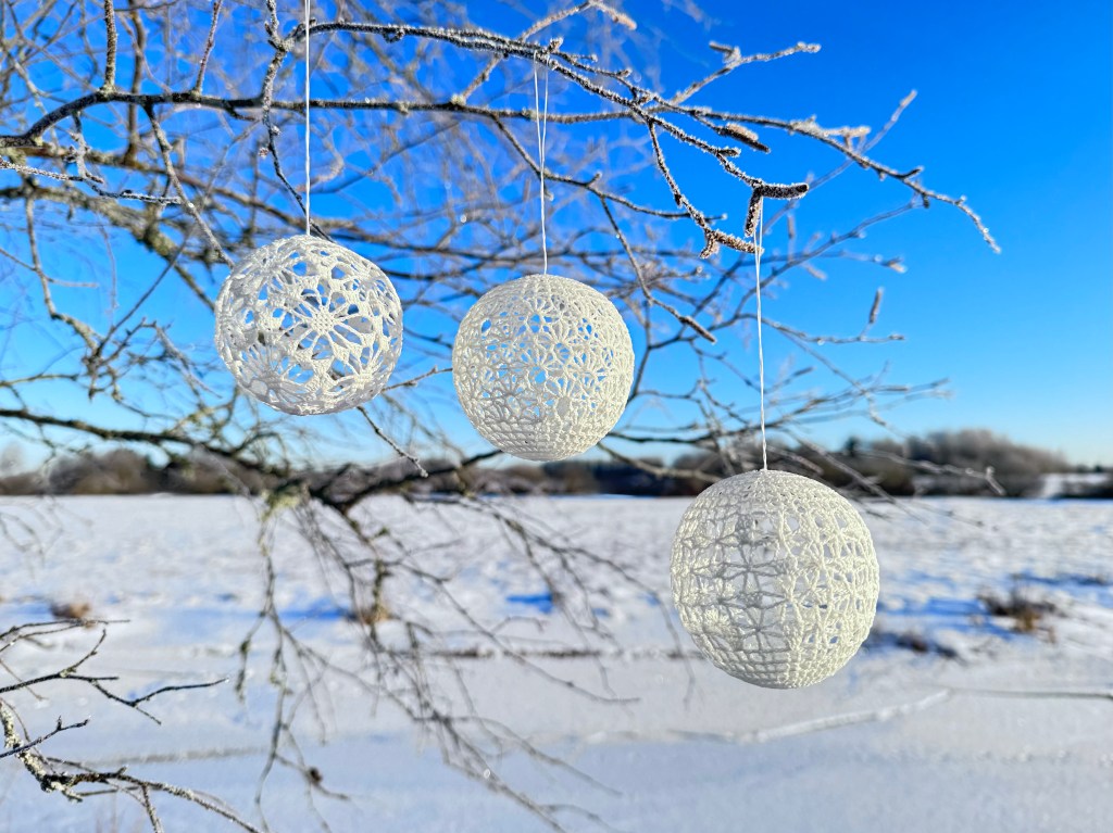 Minu enda loodud mustritega lõputööks valmistatud heegeldatud pallid.