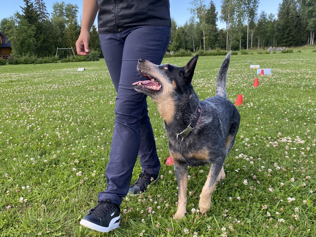 For a dog to stay focused throughout the entire course, focus and attention training must start early in the training process. Regardless of location, exercise type, or surrounding environment, the dog should always keep focus on the handler. This can be achieved by training the dog in various settings with different distractions.